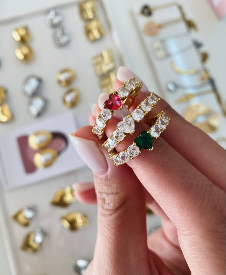 Κομψά δαχτυλίδια καρδούλες με διαμαντάκια σε τρία χρώματα
