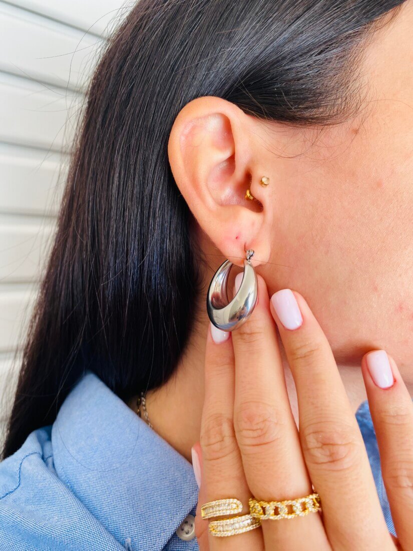 Εντυπωσιακοί ασημένιοι κρίκοι απο ατσάλι με καμπυλωτό σχέδιο