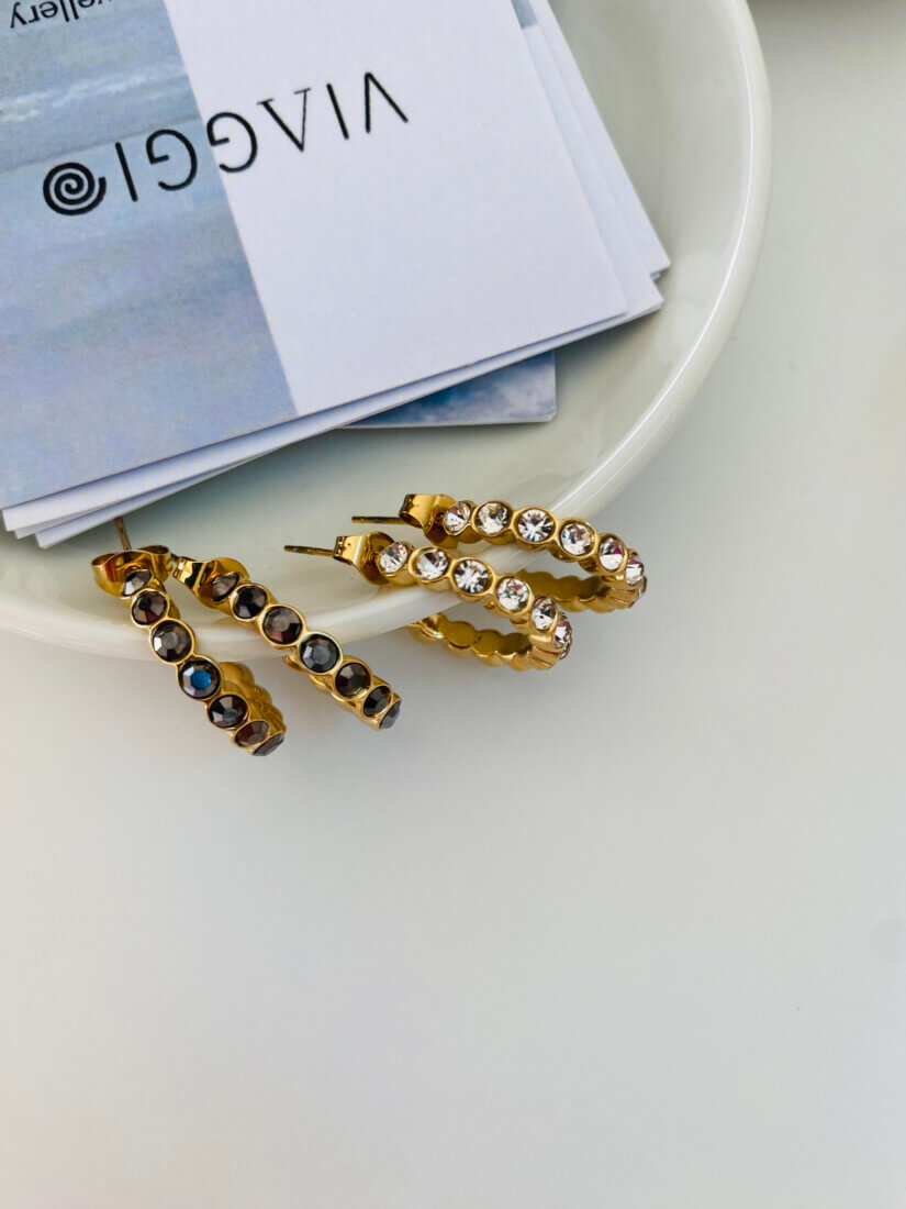 Λαμπερά κρικάκια απο ατσάλι με διαμαντάκια σε δύο χρώματα
