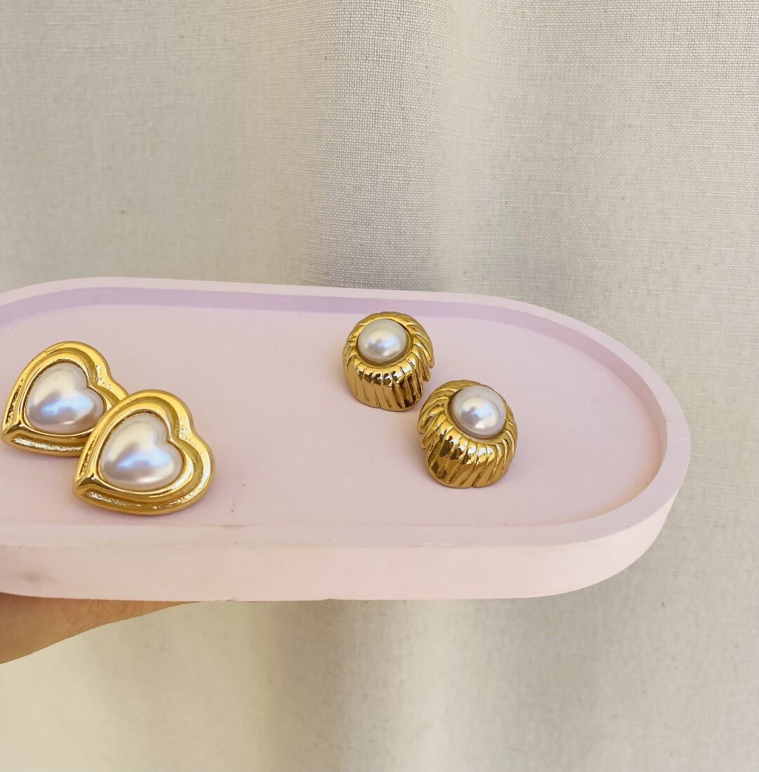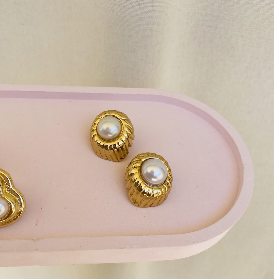 Κομψά σκουλαρίκια από ατσάλι με πέρλες και μοντέρνο σχέδιο