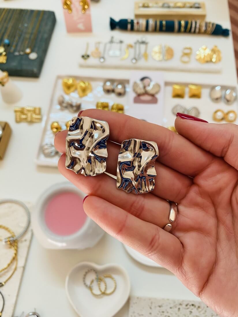 Μοντέρνα σκουλαρίκια με κομψό σχέδιο απο ατσάλι σε χρυσό και ασημί