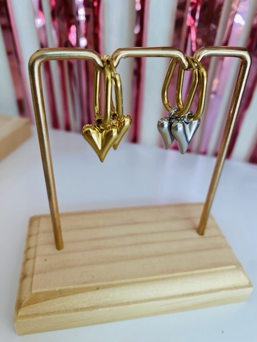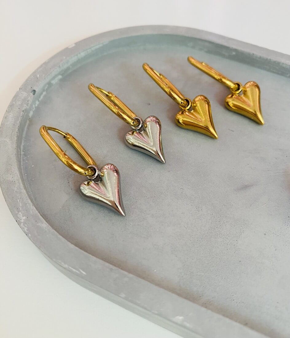 Κομψά δίχρωμα κρικάκια από ατσάλι με καρδιές
