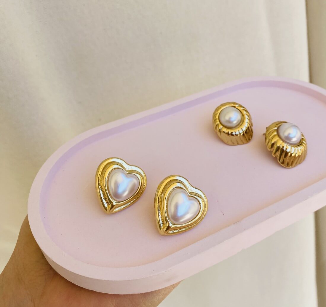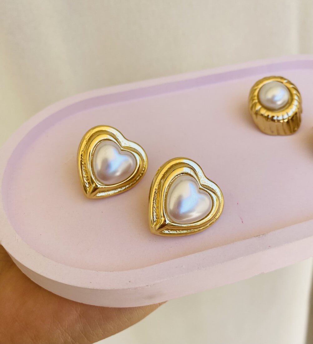 Εντυπωσιακά σκουλαρίκια καρδιές, με πέρλες σε χρυσό χρώμα