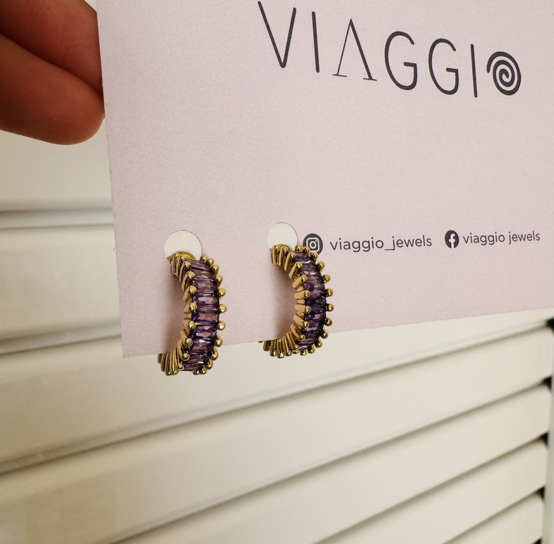 Κομψά επιχρυσωμένα κρικάκια με μωβ διαμαντάκια με υπέροχη λάμψη