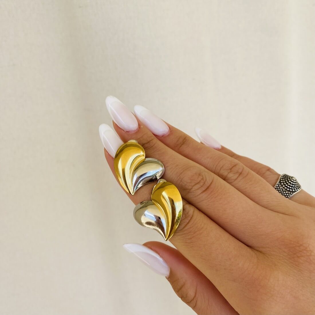 Μοντέρνα σκουλαρίκια καρδούλες σε τρεις συνδυασμούς από ατσάλι