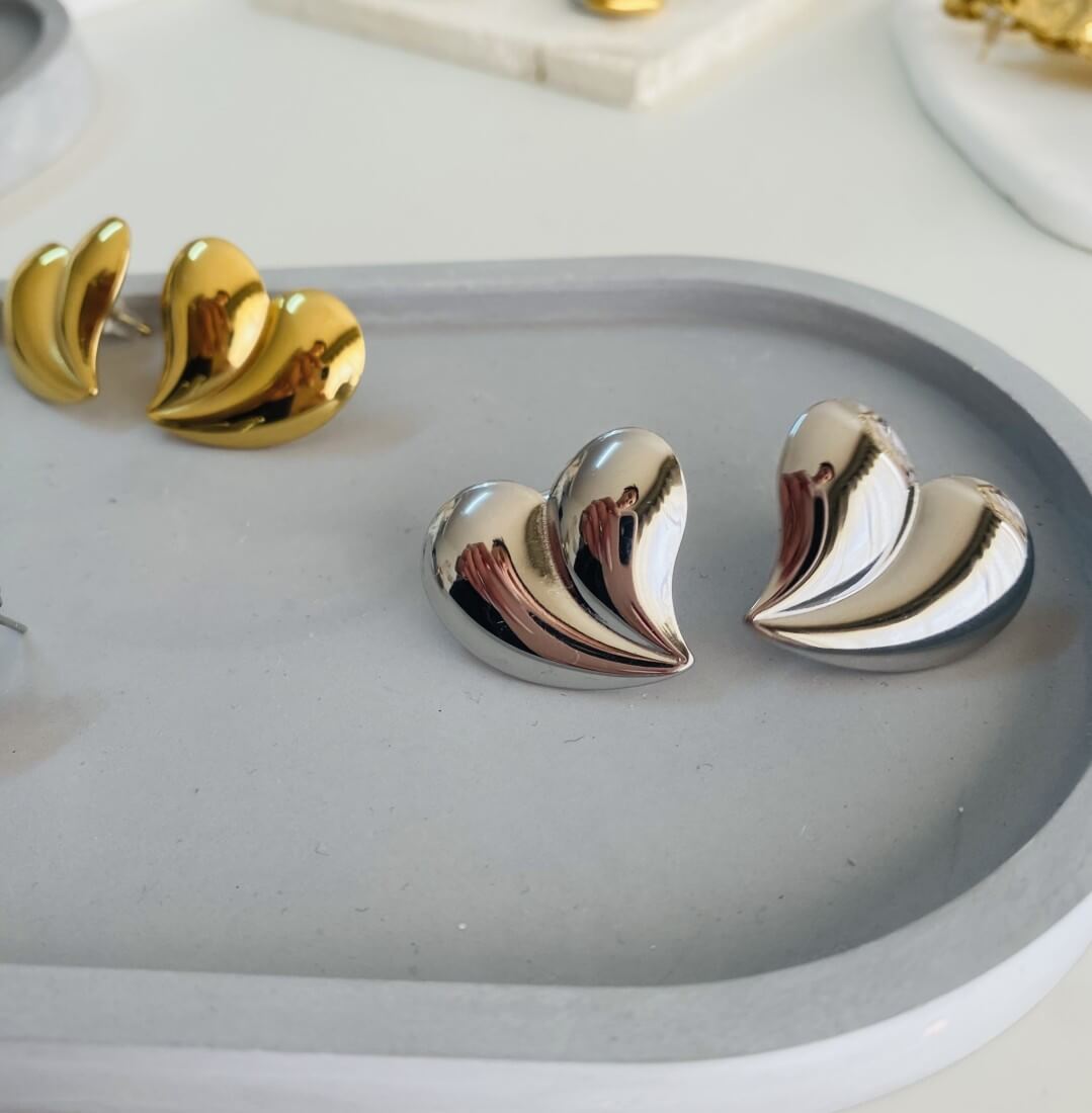 Μοντέρνα σκουλαρίκια καρδούλες από ατσάλι
