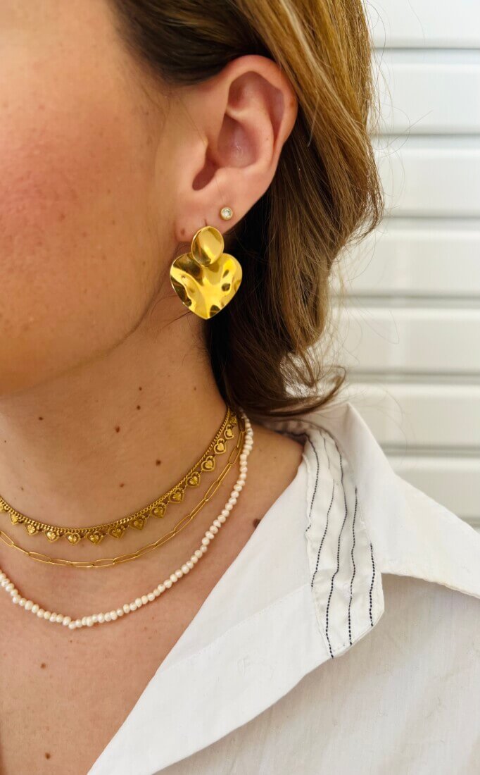 Ρομαντικά χρυσά σκουλαρίκια απο ατσάλι σε σχήμα καρδιάς