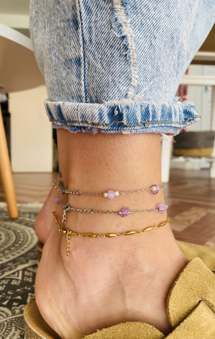 Βραχιολάκι για το πόδι απο ατσάλι με αμέθυστο