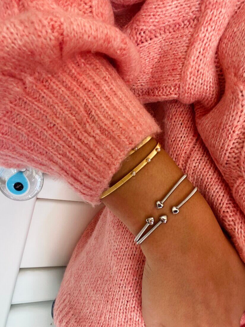 Ρομαντική χειροπέδα απο ατσάλι με minimal καρδούλες στο πάνω μέρος