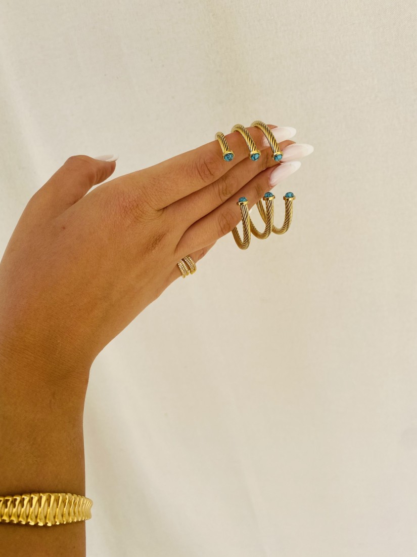 Κομψές χειροπέδες από ατσάλι με πέτρα τιρκουάζ
