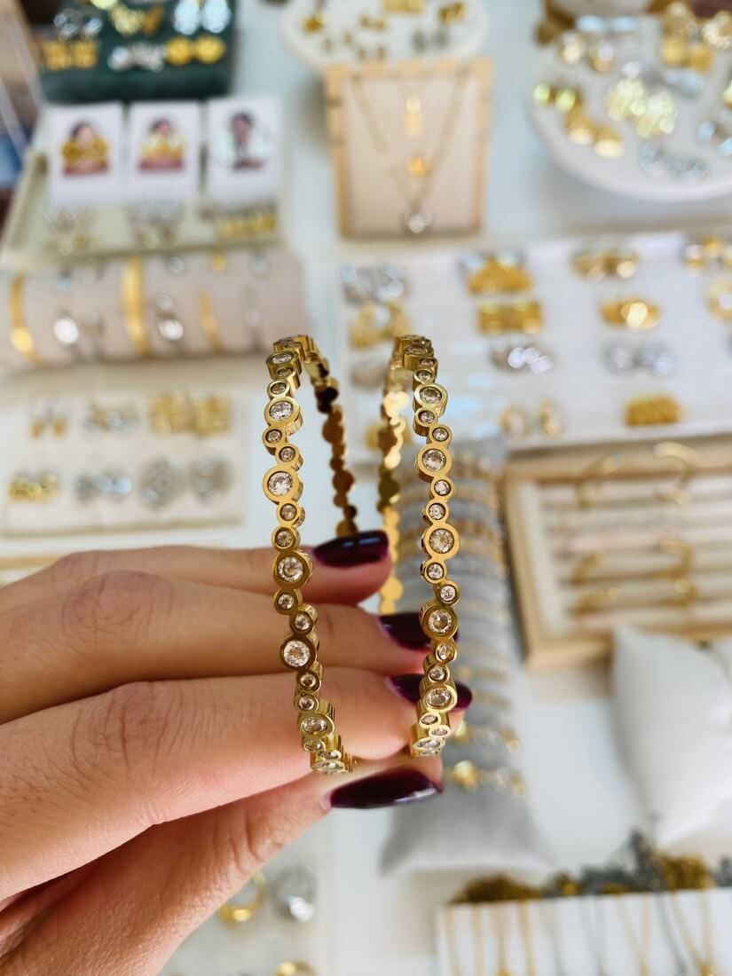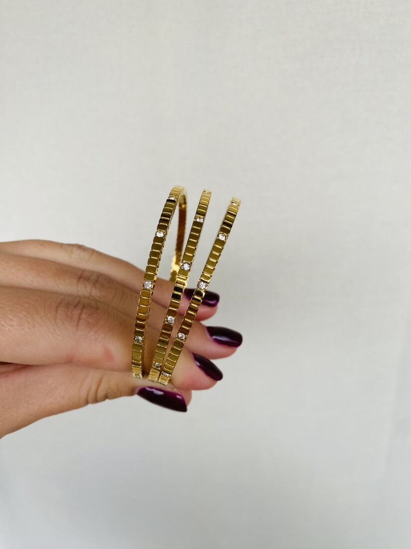 Κομψή χειροπέδα από ατσάλι με διαμαντάκια