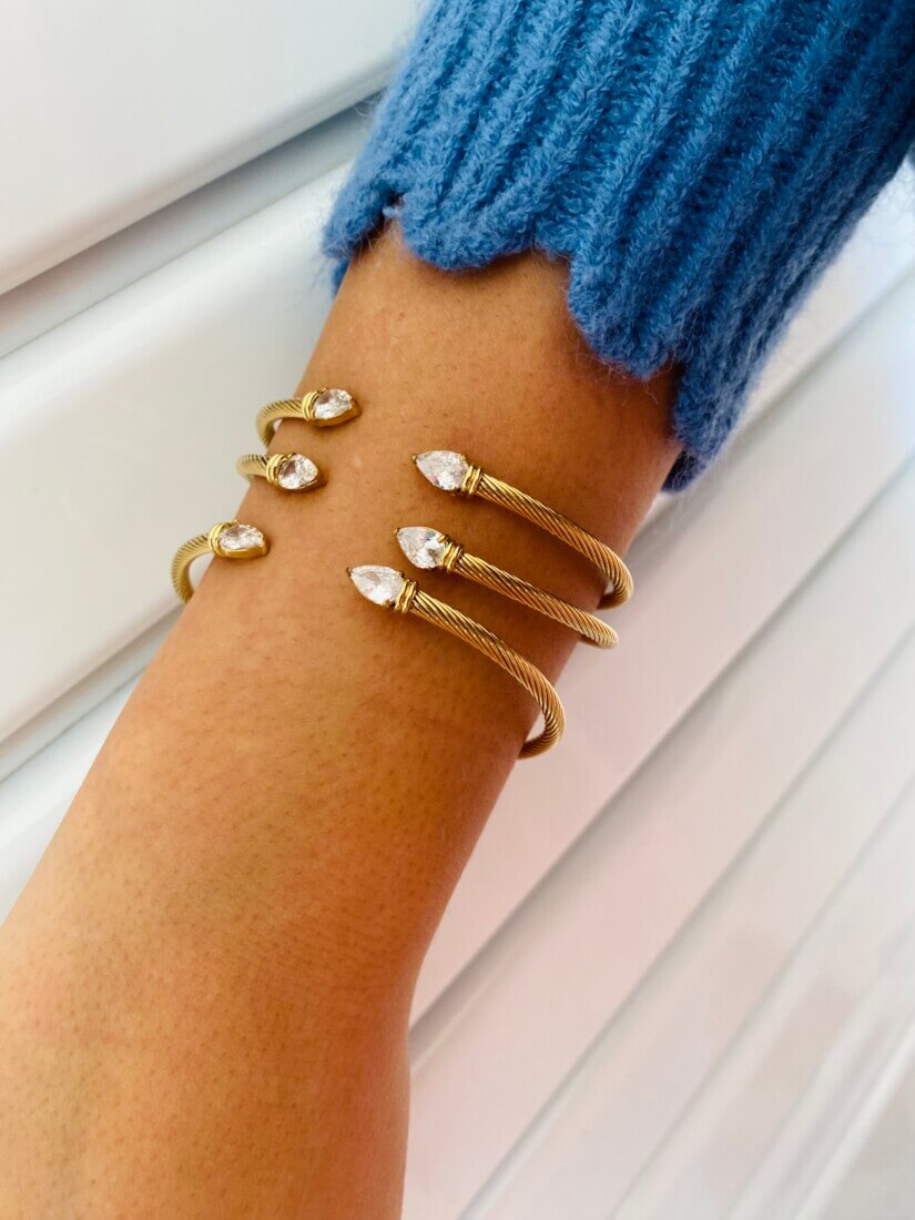 Χρυσή χειροπέδα με λαμπερά διαμαντάκια και άνοιγμα στο πάνω μέρος απο ατσάλι