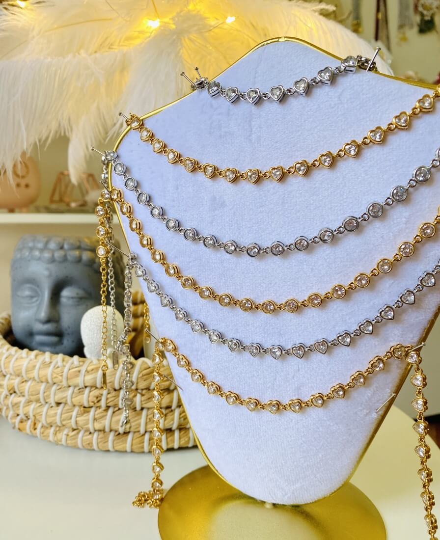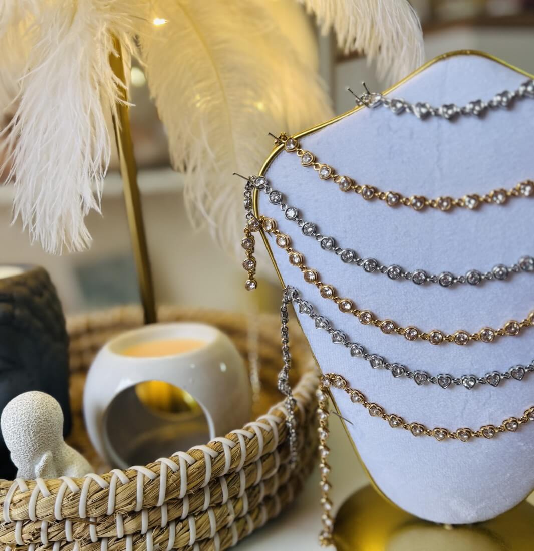 Εντυπωσιακά κολιέ με διαμαντάκια σε ασημί χρώμα, από ατσάλι