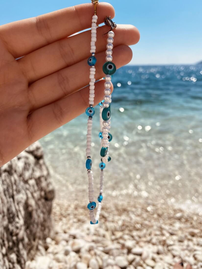 Καλοκαιρινό κολιεδάκι με χάντρες και ματάκια τιρκουάζ