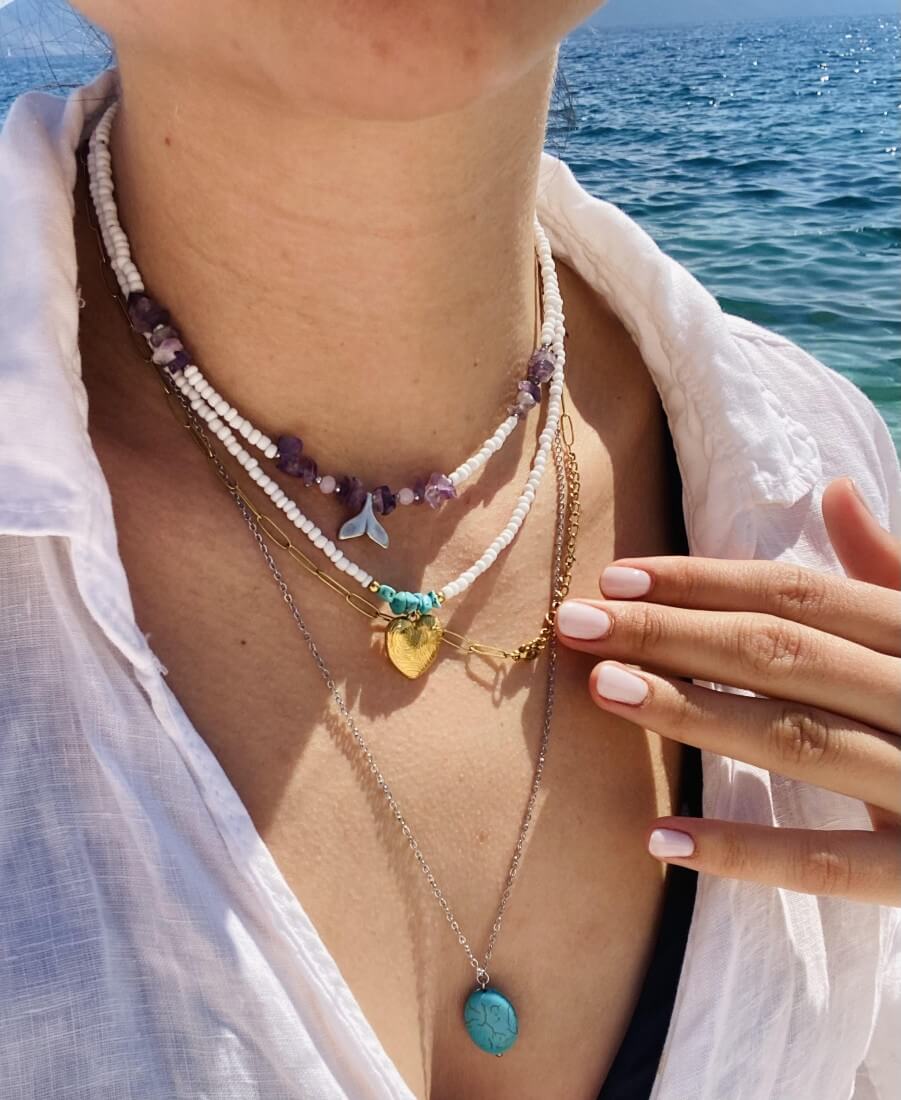 Κομψό κολιεδάκι με αμέθυστο και ουρά γοργόνας