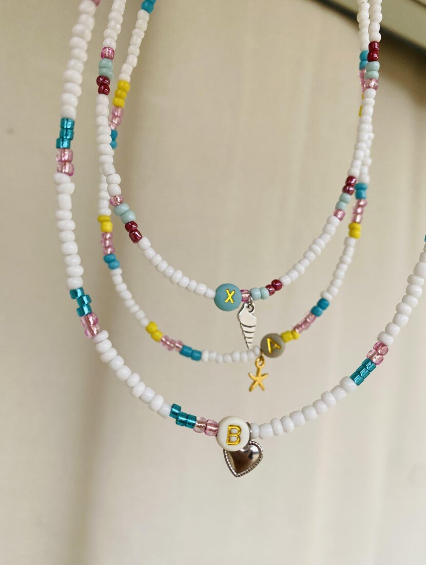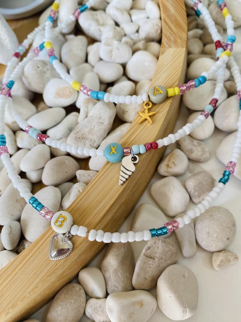 Χρωματιστά καλοκαιρινά κολιεδάκια με μονογράμματα και κρυσταλλικές χάντρες