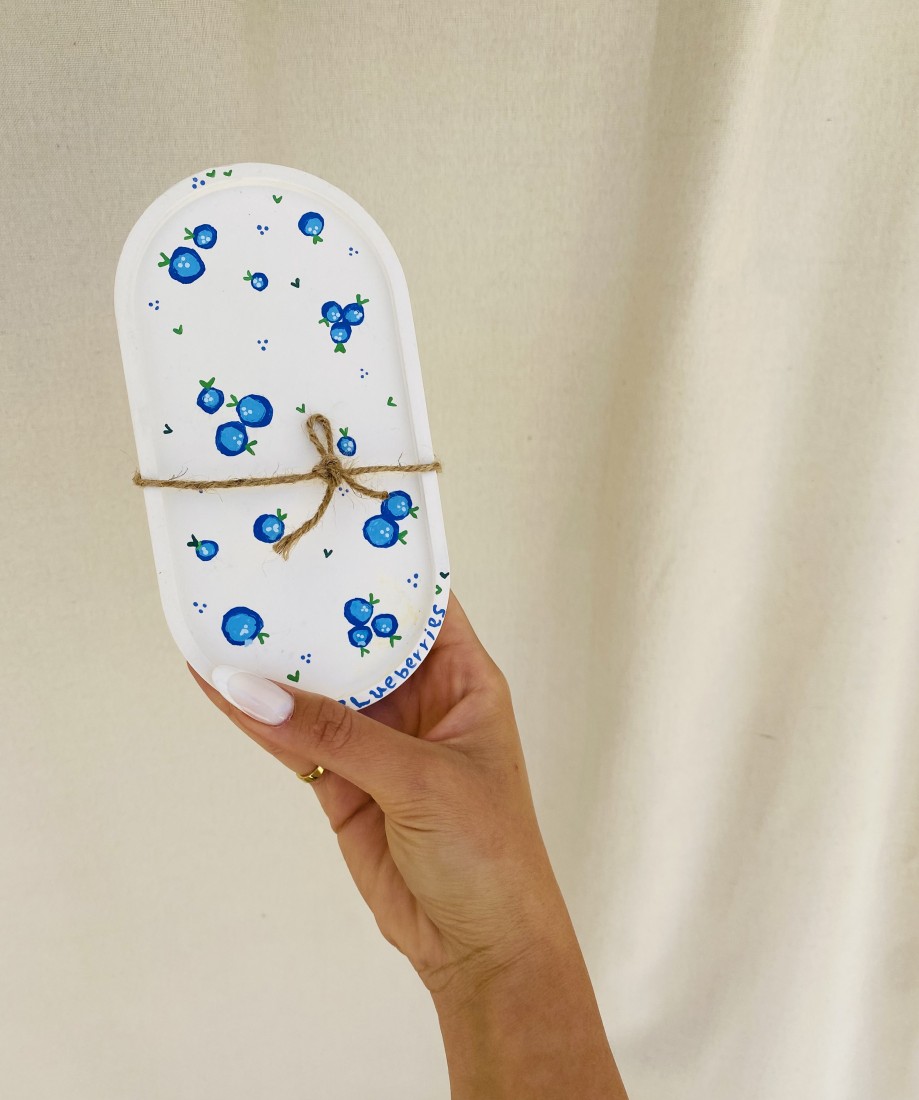 Καλοκαιρινό χειροποίητο δισκάκι από πορσελάνη με μύρτιλα