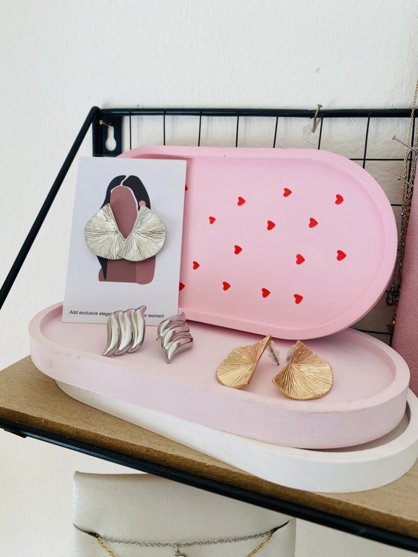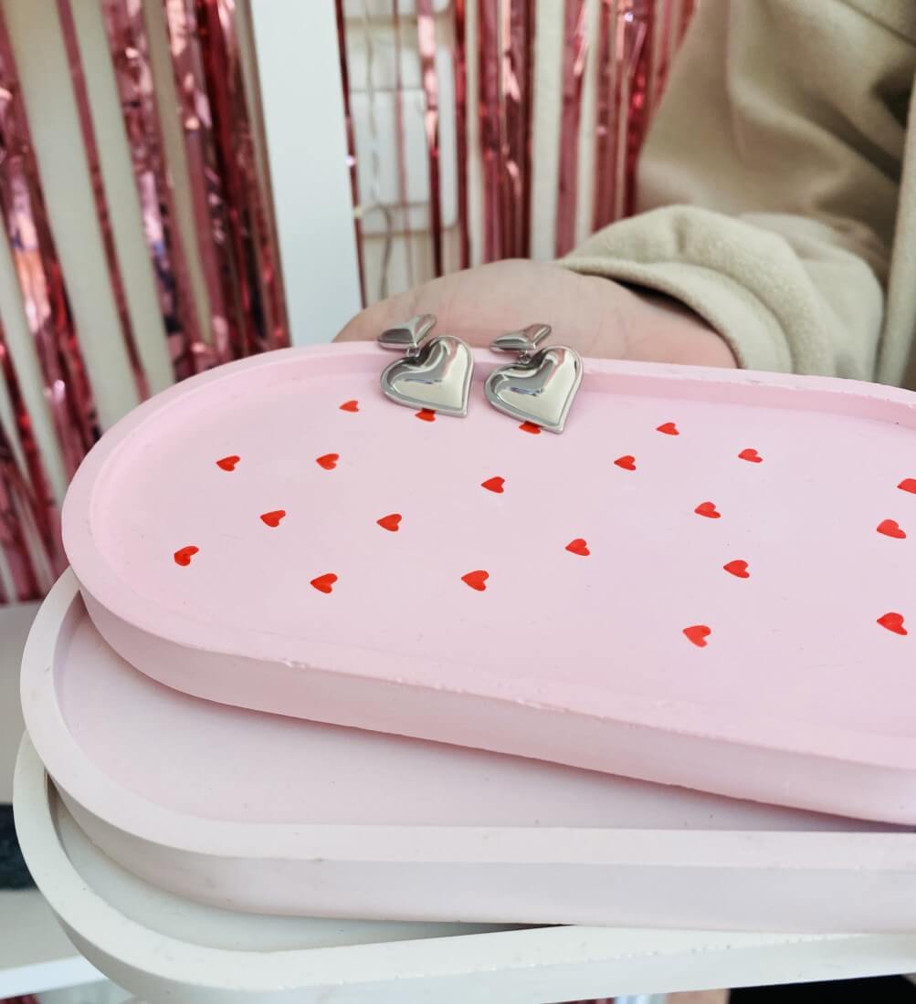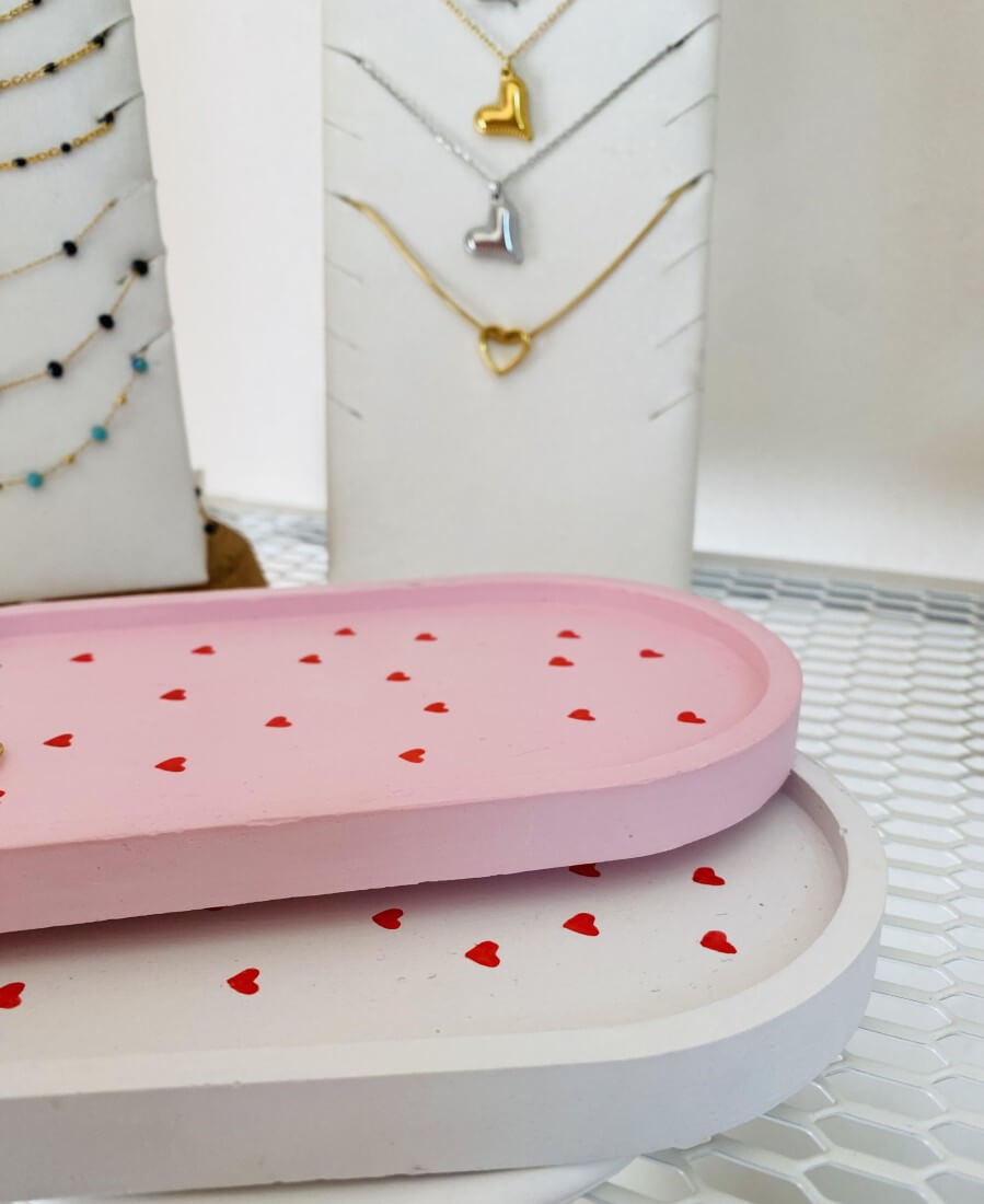Χειροποίητο πορσελάνινο δισκάκι σε λευκό και ροζ με καρδιές
